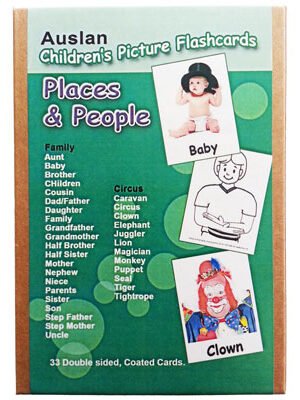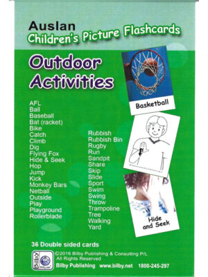 Each card is approx 10.3*15.3 cm, and double sided. The front has a large clear illustration of the sign, with the English word.