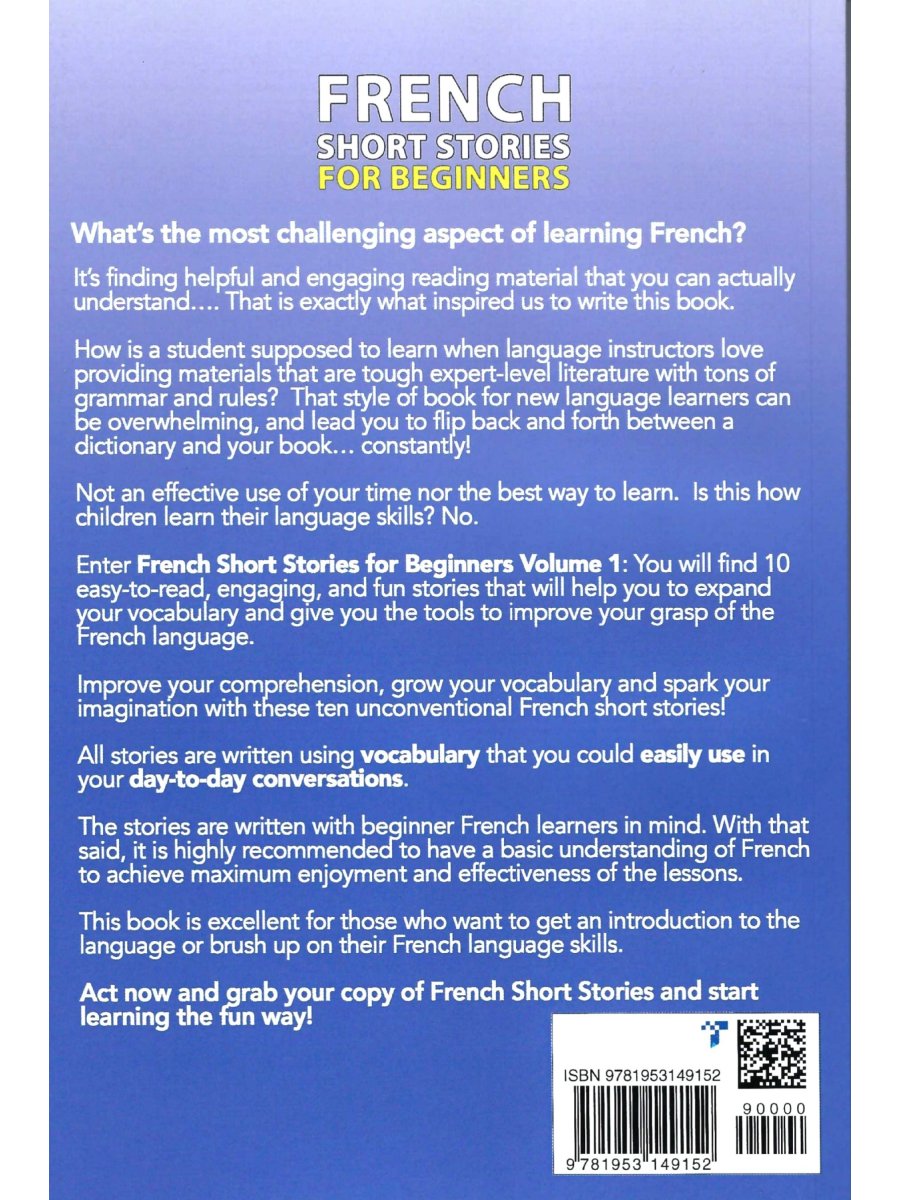 Enter French Stories for Beginners Vol. 1: You will find 10 easy-to-read, engaging, and fun stories that will help you to expand your vocabulary and give you the tools to improve your grasp of the French language.