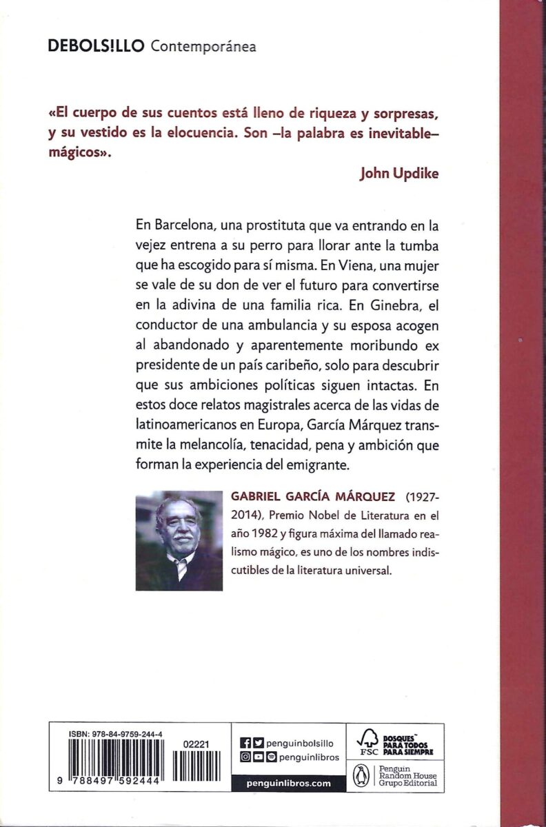 The effort of writing a short story is as intense as starting a novel. Well, in the first paragraph of a novel you have to define everything: structure, tone, style, rhythm, length, and sometimes even the character of a character. The rest is the pleasure of writing, the most intimate and solitary that can be imagined, and if one does not stay correcting the book for the rest of one’s life it is because the same iron rigor that is needed to begin it imposes itself to finish it. The story, on the other hand, has no beginning or end: it forges or it does not forge. And if it does not take shape, one’s own experience and that of others teaches that in most cases it is healthier to start it again in another way, or throw it away. This volume collects the stories that, fortunately for GarcÃa Márquez’s readers, did not end up in the wastebasket, preceded by a prologue in which he gives the reason why there are twelve, why they are stories and why they are pilgrims. He sat on the wooden bench under the yellow leaves of the lonely park, staring at the dusty swans with both hands resting on the silver pommel of his cane, and thinking of death.