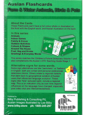 Front has photo of item and English word.