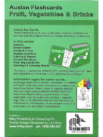 These Auslan Children’s Picture Flashcards cover the topics of Drinks, Fruit and Vegetables. These topics match with categories from the book: Auslan Children’s Picture Dictionary Volume 1